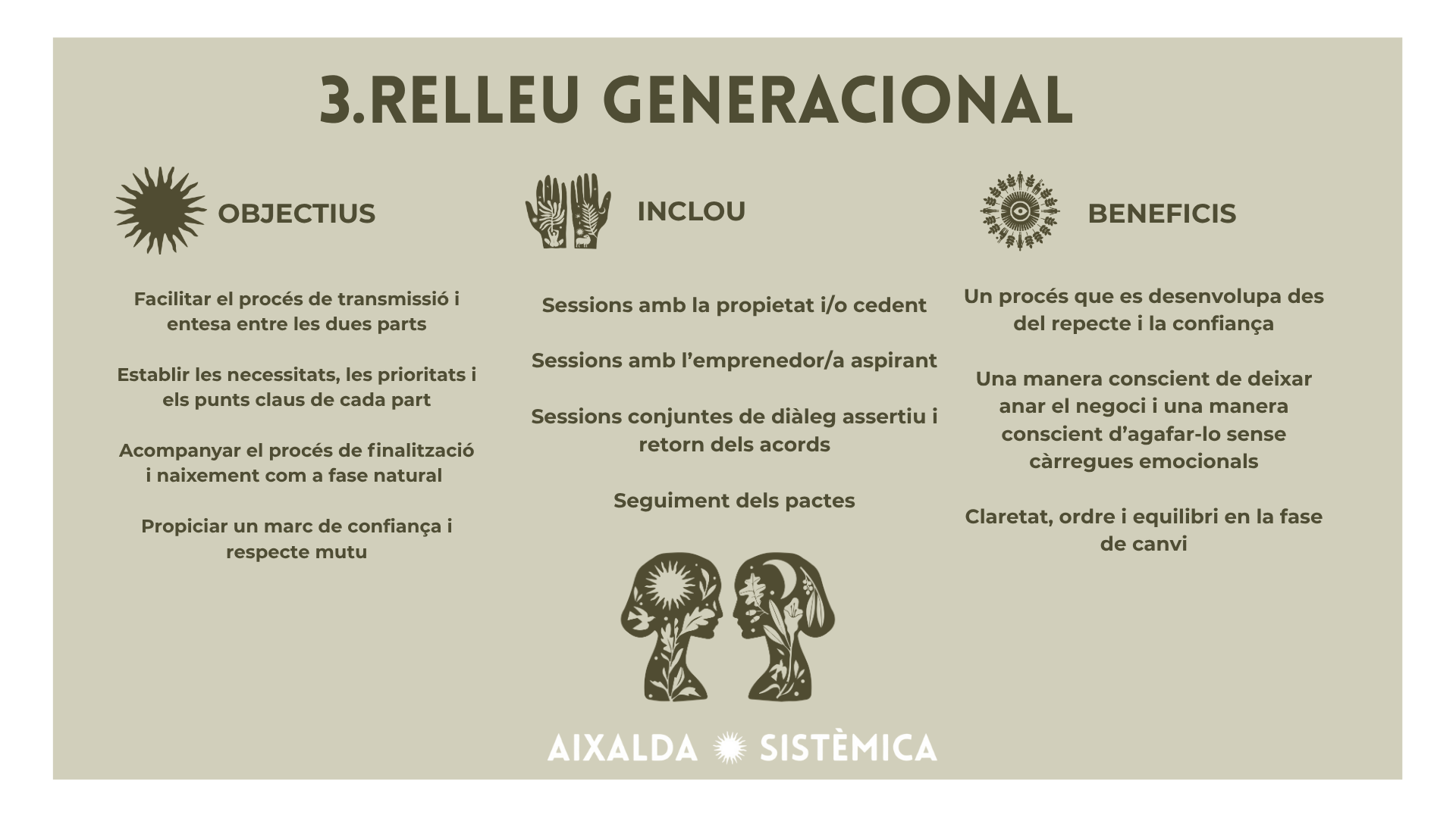 Servei d’acompanyament per a empreses que volen traspassar el seu negoci. Dirigit a persones empresàries i empresàries que cerquen una nova persona que lideri el projecte.