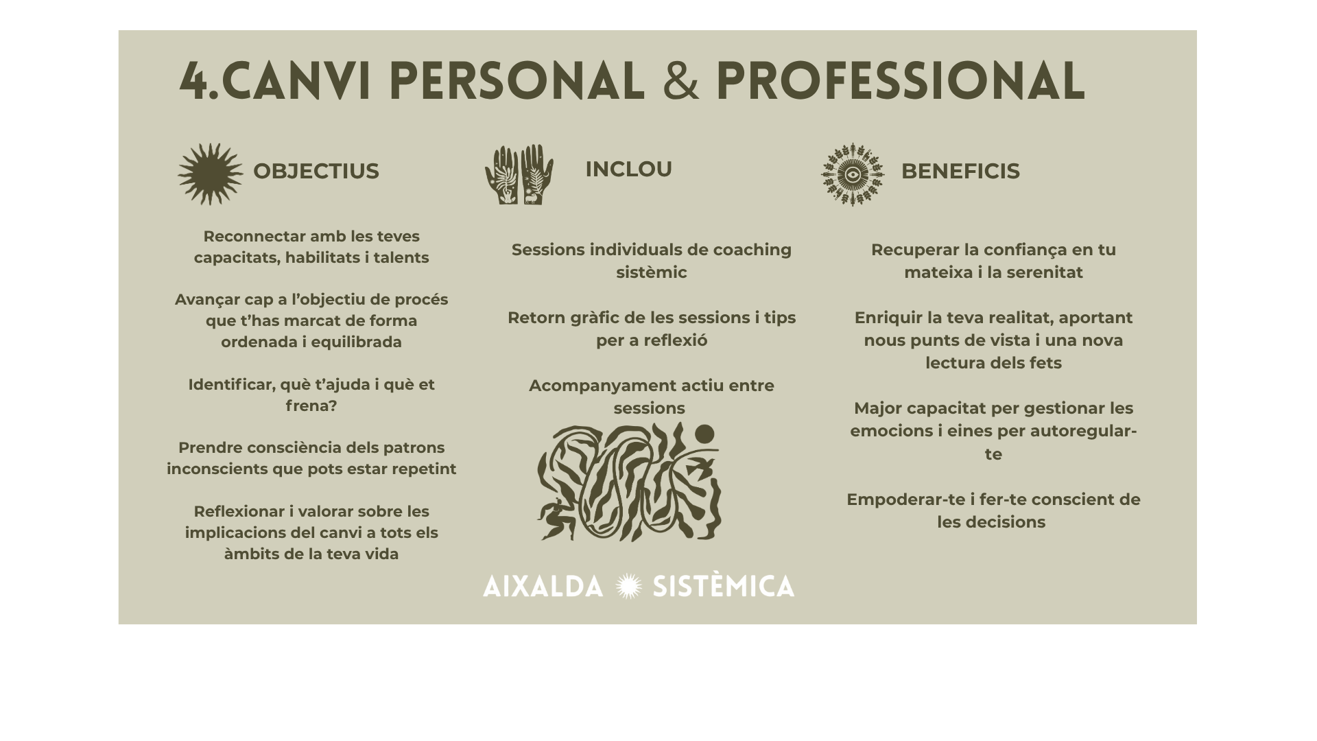 - Coherència, ordre en els rols, vincle i equilibri entre membres